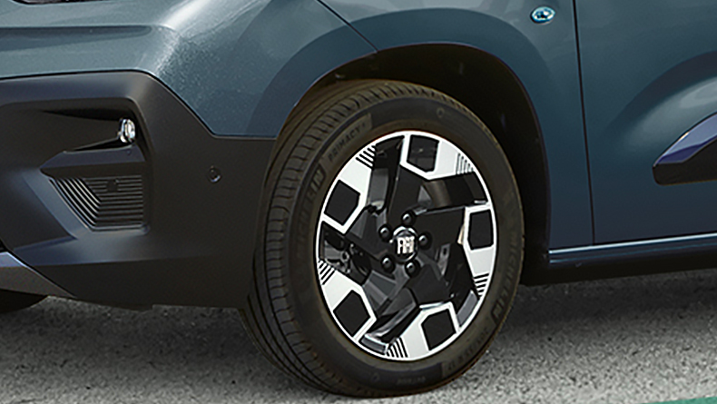More stability, more safety and, obviously, more style. All of this is brought about by the 17'' wheels of the new E-Doblò.